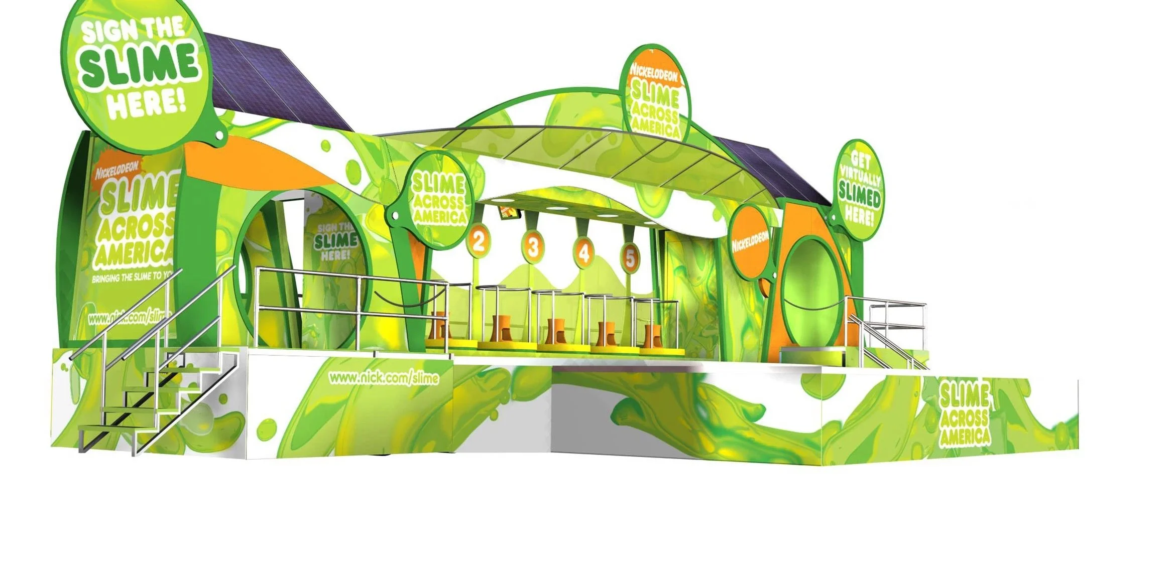 Chaque étape proposait un espace entièrement scénographié aux couleurs de la chaîne, mêlant divertissement, découverte et interaction avec les univers emblématiques de Nickelodeon.